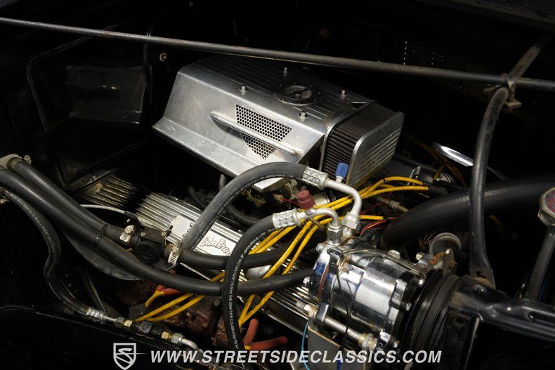 Featuring a 455 V8 engine that breathes through an Edelbrock 4-barrel carburetor and sends power to the rear wheels via a 200R4 4-speed automatic transmission. Independent coilover suspension handles the front end while leaf springs control the rear, working with the 10-bolt rear axle. Power steering lightens the wheel effort, and power front disc brakes provide stopping power. Dynomax mufflers give the dual exhaust system its sound, and the 12-volt electrical system includes a trunk-mounted battery with shut-off switch.
