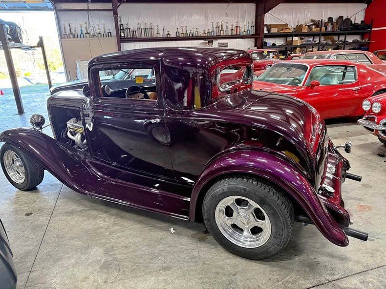 This 1932 Chevrolet Hot Rod is a professionally built classic street rod that blends timeless style with modern performance. It has only 5,200 miles since completion and is powered by a 350 V8 matched to a Turbo 350 automatic transmission with a shift kit. The body is finished in a rich purple paint, and the interior has been fully customized in beige with wooden dash accents and modern gauges. With just one owner and garage-kept care, this hot rod presents beautifully and drives just as well. It's a turn-key cruiser ready to show or enjoy.