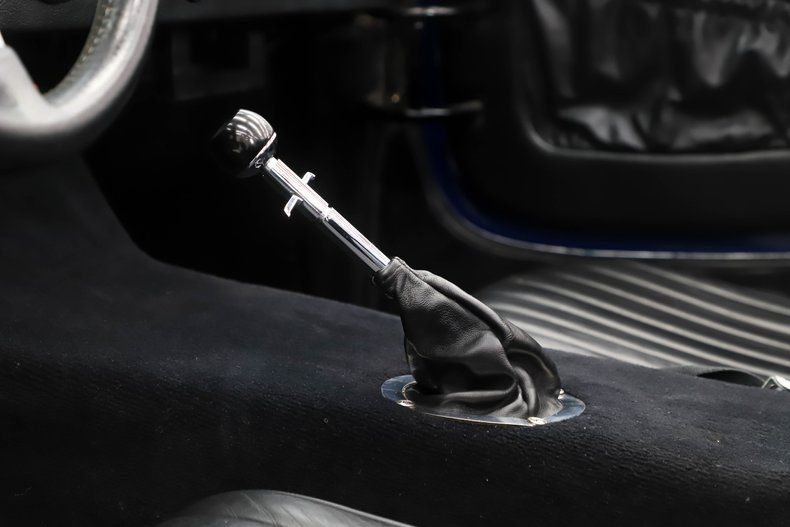 INTERIOR: Practical and pretty! It has an original design dash with all the necessary Smith gauges to monitor the vitals. The aftermarket Lecarra steering wheel is leather wrapped and has a nice fat grip. The bucket seats and door panels/pouches all have genuine leather upholstery that is durable and feels great. The Simpson racing harnesses keep you safe and snug when cutting the corners. The shifter for the 4 speed manual top loader transmission sits proudly front and center. A fire extinguisher has been mounted between the seats. The carpeting looks great and the floor has recessed foot wells built in to accommodate taller riders.