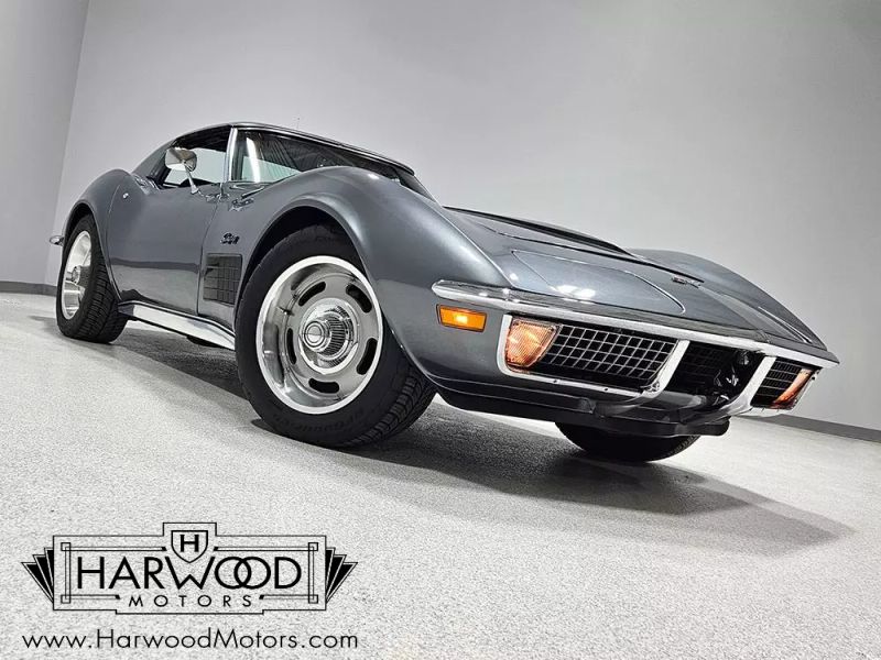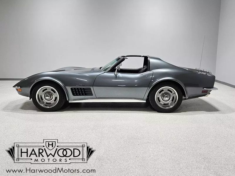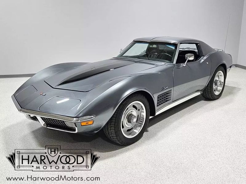 1971 was a transition year for the Corvette so everything pretty much remained the same across the board. There was still a long list of options, some beautiful colors, and with chrome bumpers front and rear, the C3 was still one of the most attractive cars on the road. This one is finished in correct Steel Cities Gray, which was on the color chart in 1971, although a quick check of the trim tag says it was originally Mille Miglia Red. No matter because theres simply no trace of the red paint anywhere on the car, suggesting that the repaint was professionally and thoroughly done. The awesome charcoal gray finish has just enough metallic in it to give it a great shine, and the stinger on the hood was painted gloss black to emulate some of the hoods on Corvettes of the 1960s. Other details include rechromed bumpers, a luggage rack, and shiny anodized trim on the rockers, all of which work to make this one of the most appealing Vettes weve featured in quite a while.