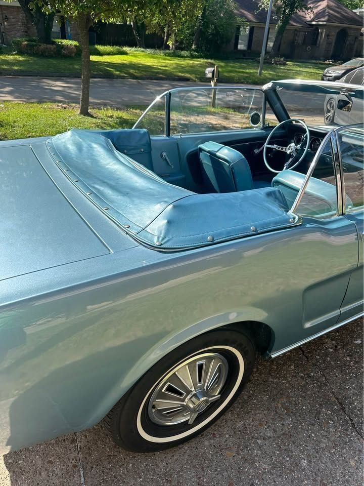 This 1966 Ford Mustang Convertible is a beautifully preserved American icon. Showing just 14,985 miles, it features a strong-running V8 engine paired with an automatic transmission for easy cruising. The vehicle retains its originality throughout while boasting a brand-new paint job that enhances its classic blue exterior. The matching blue interior is clean and original, making this a perfect car for collectors or weekend drivers alike.