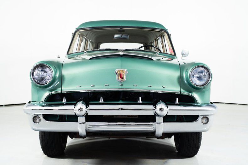 The green and cream exterior is accented by classic wood paneling, while the matching interior features three rows of seating. The seat upholstery is believed to be original, complemented by new carpet. With only 44,000 miles believed to be original, this 1953 Mercury for sale has been carefully preserved.