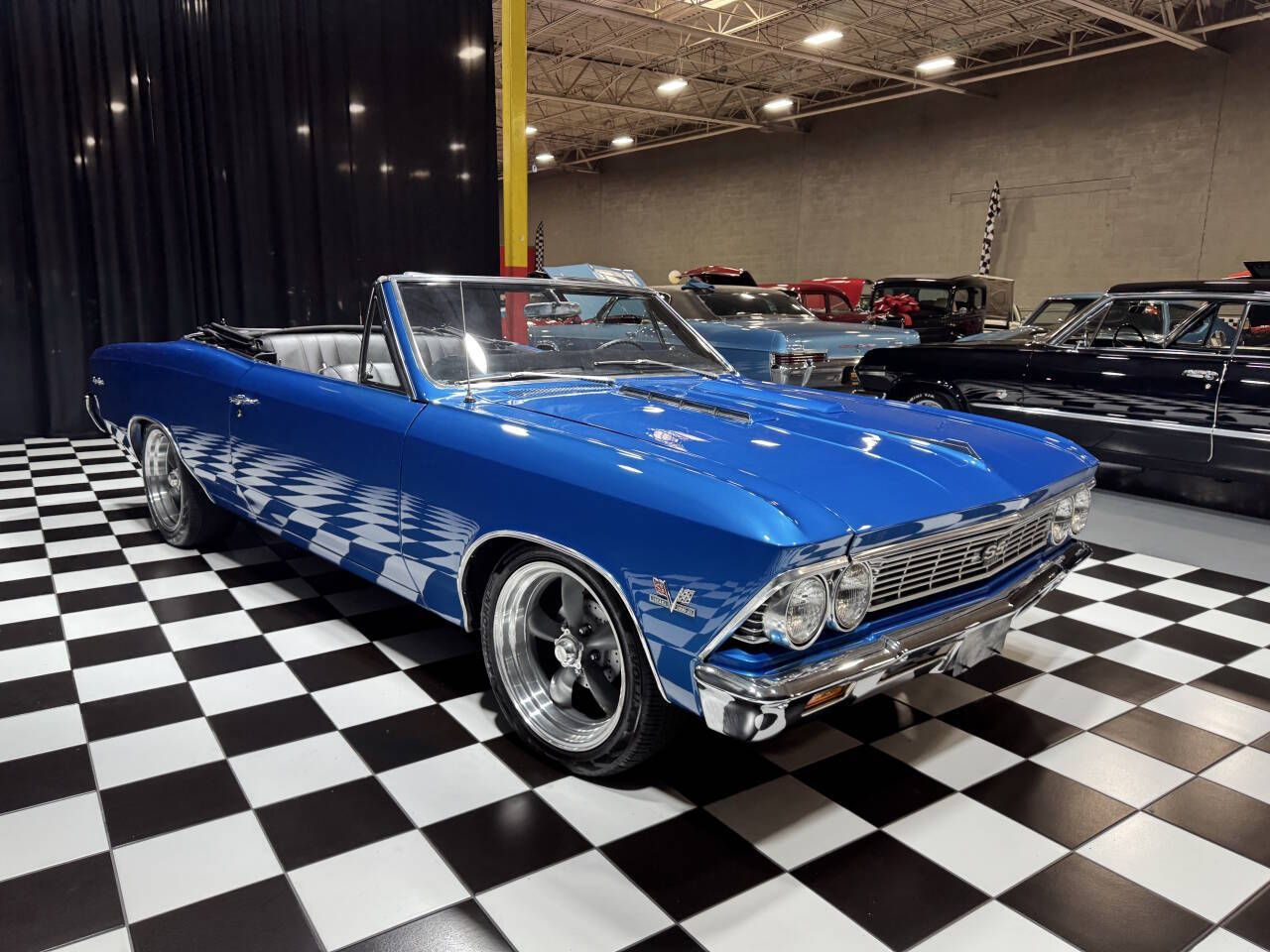 1966 Chevrolet Chevelle Convertible 396 CI V-8 engine rebuilt Performance cam and other upgrades 4-speed manual transmission Refinished Marina Blue Metallic exterior Black convertible top Black bucket seat interior Center console Vintage Air Power steering American Racing Torque Thrust wheels Dual exhaust Check out my Video! IF you can dream it YOU can do it!! Suggested Retail price $65,000.00 MGM Buy it Now price $62,750.00 Financing available $6500 down pmt Must have good credit Sales tax & delivery can be financed as well Apply today on our website Text zip code for delivery quote 847-848-1850 All cars are sold in as-is condition Shown by appointment only! MGM Classic Cars LLC 150 S. Church Street Addison, IL 60101 Mon-Fri 9 am-5 pm Sat 10 am-3 pm