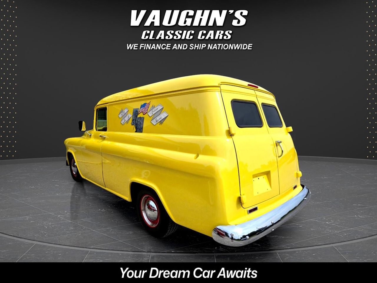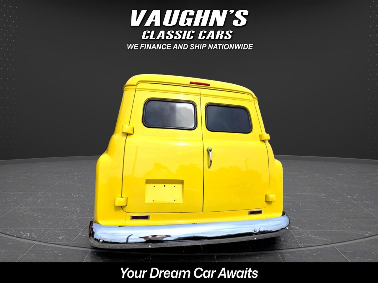 WOW! Check out this awesome 1956 Chevy 3100 panel truck with tons of custom touches. Including air ride suspension, vintage heat and air, side exit exhaust, power steering and brakes, many custom body modifications and Frenching, excellent custom paint on a rock-solid body, custom gauges, seats and complete custom stitched interior with wood floor. The truck features a 5.8L 351 V8 engine, automatic, and the best of everything included in this build. We can ship it to you nationwide and we have great financing option if needed. Call us at 618 336 5210 to discuss a deal. Visit Vaughns Classic Cars online at vaughnsclassiccars.com to see more pictures of this vehicle or call us at 618-336-5210 today to schedule your test drive.
