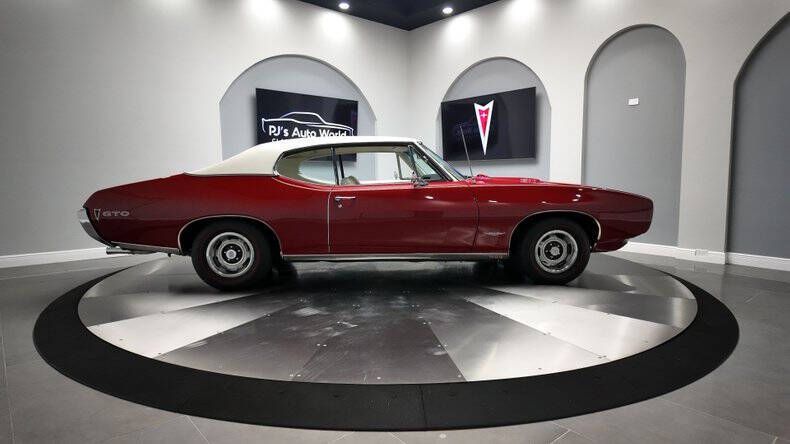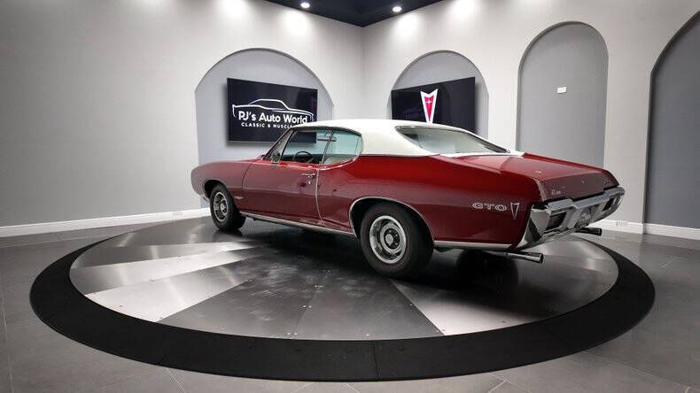 PJ's Auto World is pleased to offer this 1968 Pontiac GTO for Sale. Numbers Matching 400 Cu In (WT engine block factory rated at 360 horsepower), Quadrajet 4 barrel carburetor, dual exhaust, Muncie 4 speed manual transmission, power steering, front power disc brakes, 14 Pontiac Rally Wheels with BF Goodrich red line radial tires, beautiful Code R Solar Red exterior, painted-on pin stripe, scooped hood, hood mount tachometer, white vinyl top, chrome mirrors, Code 224 Parchment bucket seat interior, center console, 3 spoke wood steering wheel, tilt steering column, detailed dash and instruments, in-dash tachometer, working factory AM radio and hidden Custom Autosound remote radio tuner, day night mirror, embroidered floor mats. This is a quality car that drives amazing and guaranteed to put a smile on your face every time you run this 4-Speed Muscle Car through the gears! This Pontiac is ready to be driven and enjoyed! With over 45 years of dedicated service to the Collector Car Community, our team is eager to answer any questions you may have. Finance options available and worldwide shipping can easily be arranged. Interesting trade-ins will also be considered.