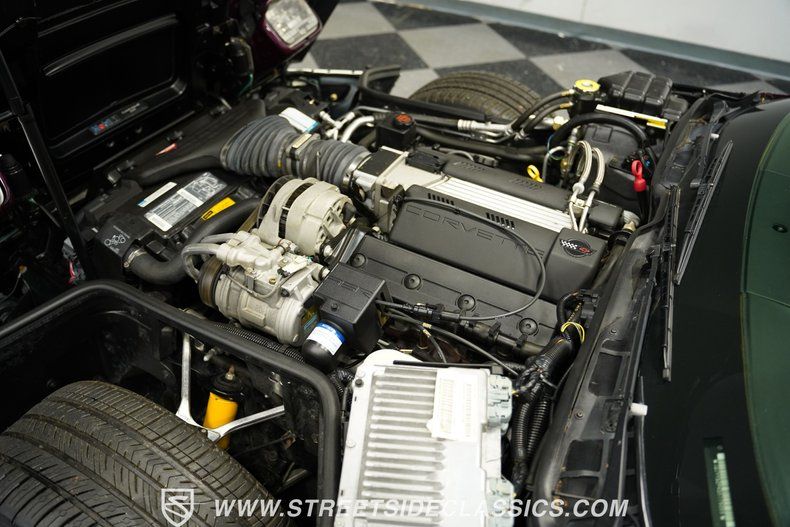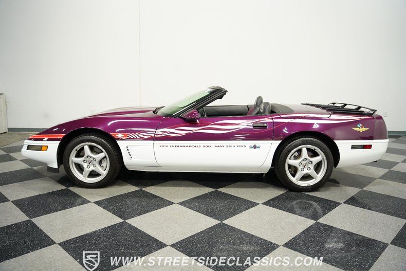 Racing royalty takes shape in just 527 examples, and this 1995 Chevrolet Corvette Indy 500 Pace Car carries the exclusive Z4Z designation that separates it from every other Corvette on the street. Dark Purple Metallic paint covers every surface while Arctic White accents race across the bodywork like racing stripes born from the Indianapolis Motor Speedway itself. The white vinyl convertible top drops away for track-day thrills, and 17" wheels at all corners wear 275/40ZR17 rubber that was sized for serious grip. Pace car graphics and Corvette windshield stickers announce this machine's racing credentials, while the luggage rack adds practical storage without compromising the speedway-inspired aesthetics.