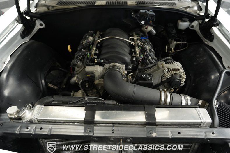 L92 aluminum block displaces 6.2 liters with electronic fuel injection feeding the mill. Comp Cams 230/246 .591 .596 113 specifications wake up the valvetrain, while the Tremec T56 6-speed manual handles gear changes. BMR front and rear roll bars work with BMW rear upper and lower control arms plus springs, Speed Tech front upper control arms, and QA1 adjustable shocks to keep this Chevelle planted. Wilwood four-wheel disc brakes handle stopping duties. Dual exhaust runs through an X-pipe setup with Dynomax mufflers and long tube headers, while the Trick Flow rear differential cover finishes the package.