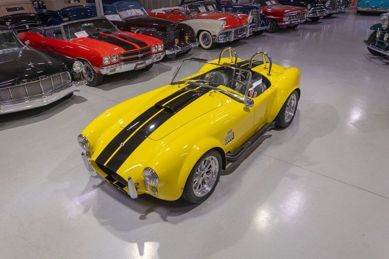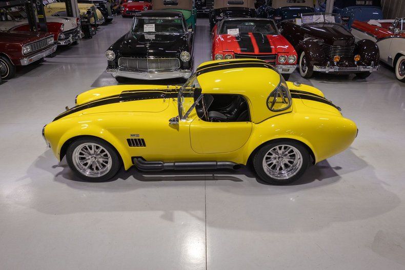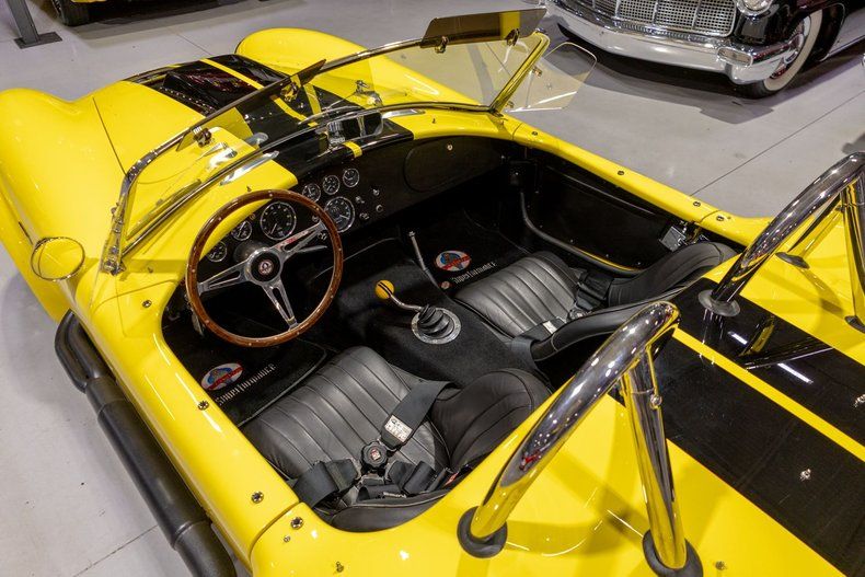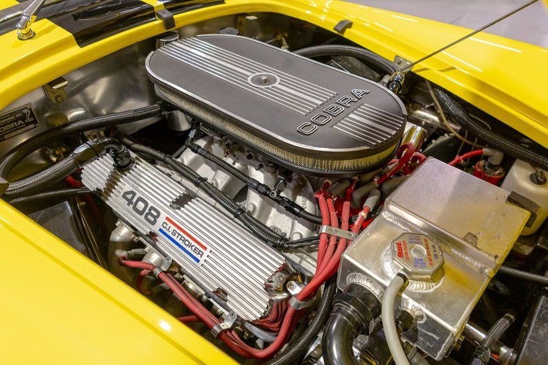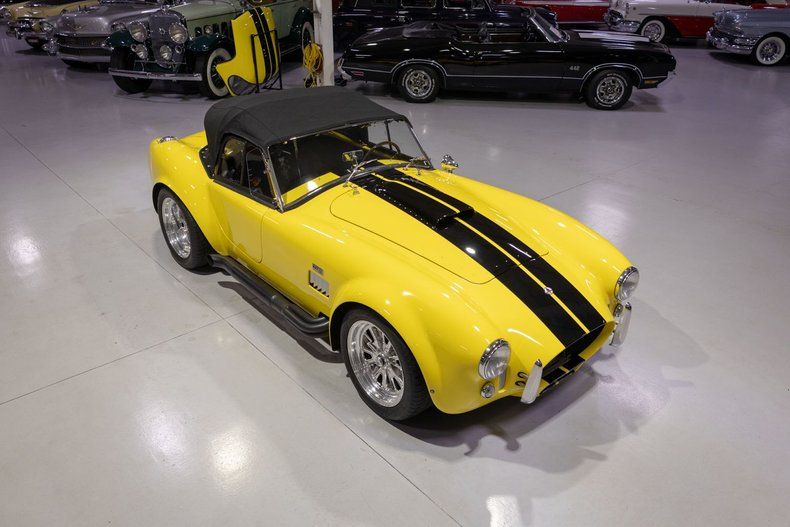 This 1965 Superformance Cobra MKIII features a drivetrain built by the legendary Superformance expert, Ohltoff Racing, that provides a visceral driving experience! Superformance stands in a league of its own, delivering what is widely considered the finest Cobra reproduction available today. For this reason, Superformance is the only manufacturer of Cobras officially licensed, authorized, and endorsed by Carroll Shelby himself! What truly sets Superformance apart is that it's the exclusive builder granted full rights by Shelby to replicate his legendary 1960s race cars. Unlike kit cars that come in pieces and are assembled in garages by hobbyists, every Superformance Cobra is hand-assembled by skilled craftsmen in a dedicated factory setting. These cars arrive as fully finished rolling chassis-complete with show-quality paint, premium interiors, and fully installed components like independent front and rear suspension, Wilwood disc brakes, rack-and-pinion steering, and a limited-slip rear differential. Just add your choice of engine, transmission, wheels, and tires, and it's ready to go. Superformance uses only new, top-quality parts-never salvaged or recycled components like those found in budget kits-ensuring a tight, rattle-free driving experience that rivals even modern performance cars. From the leather-trimmed cockpit to the precise handling and race-inspired engineering, everything about a Superformance Cobra is designed to deliver the authentic Shelby experience with modern reliability. Whether you're a collector or an enthusiast, there's simply no comparison-Superformance is the gold standard in Cobra replicas, and everything else is just second best. This particular '65 Cobra comes to us from the estate of its original southern-based owner and caretaker, who commissioned and oversaw its incredibly impressive build that is fully documented with this car's included documentation. Under the locking hood is an Ohltoff Racing-built 408 cubic inch Ford Racing aluminum stroker V8 that is based upon a 351W architecture and it breathes through a smooth starting and running Holley 4 barrel carburetor mounted atop an Edelbrock aluminum intake manifold. As one can expect with a premium Cobra build such as this one, the powertrain is absolutely loaded with performance upgrades! Firing up this premium Superformance MKIII is a total breeze thanks in part to the upgraded MSD electronic ignition system that also makes for a more reliable driving automobile. Exhaust exits the 408 Stroker V8 via a set of tubular headers and out through a set of side pipes that give this hand-built Cobra its unmistakable, roaring sound. The internals of the cast aluminum 408 V8 are also said to have been upgraded with performance-oriented, racing parts including an Eagle Specialty Products crankshaft and connecting rods, a hydraulic roller camshaft, and forged Trick Flow pistons. Further augmenting the performance of this massively powerful Ford Racing powerplant are a set of Trick Flow cylinder heads with Competition Cams rocker arms that surely add to the already impressive power output of this Ohltoff-built V8. As one can expect from the upgraded performance of this Cobra's powerplant additional heat is generated however thanks to an upgraded cooling system comprised of an aluminum radiator and oil cooler, as well as electric fans keep the engine and its systems cool especially at peak performance. Additionally, the 408 Stroker V8 is backed by a Tremec T56 6-Speed manual transmission that makes this Superformance Cobra MKIII an absolute blast to take down the road and go through the gears. This Cobra also sports a number of wonderful updates that modernize the driving experience as well. A hydraulic-assisted clutch makes shifting the Tremec 6 Speed feel almost effortless and more in line with a modern manual transmission car. Additionally, 4-wheel Wilwood power disc brakes make for another fantastic update on this retro-inspired build ensuring that you can easily and reliably bring this beast to a complete stop with next to no effort. Moreover, rack and pinion steering makes squeezing into a tight parking space at the local car show or rest stop on a car cruise a total breeze while maintaining a wonderful feel taking a tight corner. Further adding to this already amazing Superformance MKIII Cobra are a number of optional upgrades to the exterior including front and rear chrome bumperettes, driver and passenger chrome roll hoops, a driver's side racing mirror, dual wing windows, and a LeMans-style fuel filler door. In addition, this Cobra also comes with a color-matched removable hardtop as well as a removable black cloth soft top, side curtains and tonneau cover so that you can enjoy cruising in and showing off your Cobra in virtually any weather condition. Riding on a set of 17 inch polished Halibrand-Style pin-drive Knockoff Wheels, each mounted with radial tires, this 1965 Shelby Cobra reproduction has a fantastic modernized look and feel whether parked or cruising the open road. The hand-laid factory-built Superformance fiberglass body is finished in Yellow 2-stage basecoat/clearcoat along with black painted Shelby-style rally stripes that together make for an eye-popping rig. Unsurprisingly, the factory installed interior of this 1965 Superformance Cobra MKIII is top-notch! The period-correct bucket seats feature German black leather that has a fantastic, high-quality look and feel, and they are also incredibly comfortable. The matching leather door panels and center tunnel, black carpeting and Superformance Cobra floor mats, and upgraded woodgrain Moto-Lita style steering wheel are in fantastic condition and further demonstrate why Superformance is the top-dog for Cobra builds. The matching dash features an impressive array of Smith and Lucas branded instrumentation including a period-correct reverse-sweep 180 MPH Speedometer, 8,000 RPM tachometer, oil pressure gauge, oil temperature gauge, amp gauge, eng