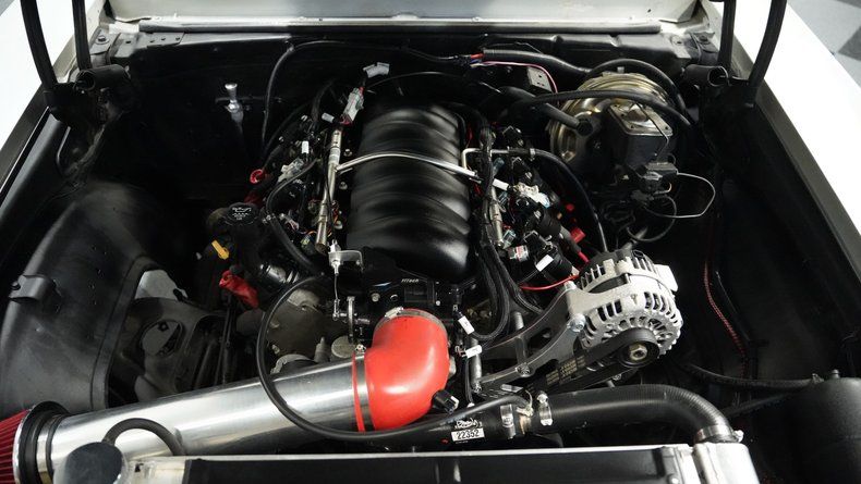 A 6.0L LS V8 iron block with LS3 intake provides the motivation, backed by a 3-speed TH350 automatic transmission. BTR LS3 stage 2 camshaft and Holley in-tank fuel pump feed this powerplant, while long tube headers connect to a Flowmaster dual exhaust system. The 12-bolt rear end contains 3.73 gears for acceleration, and subframe connectors add structural rigidity. Power disc brakes up front handle stopping duties.