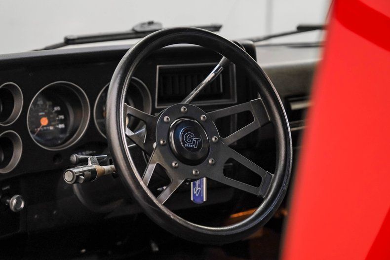 A 350 V8 engine houses an Edelbrock intake manifold topped with a Summit carburetor. Long tube headers connect to dual Dynomax mufflers through the exhaust system. The 700R4 four-speed automatic transmission contains less than 500 miles since a complete rebuild and power steering and power disc front brakes handle directional and stopping duties. Coil spring front suspension works with leaf spring rear suspension while the 10 bolt rear axle transfers power to the wheels.