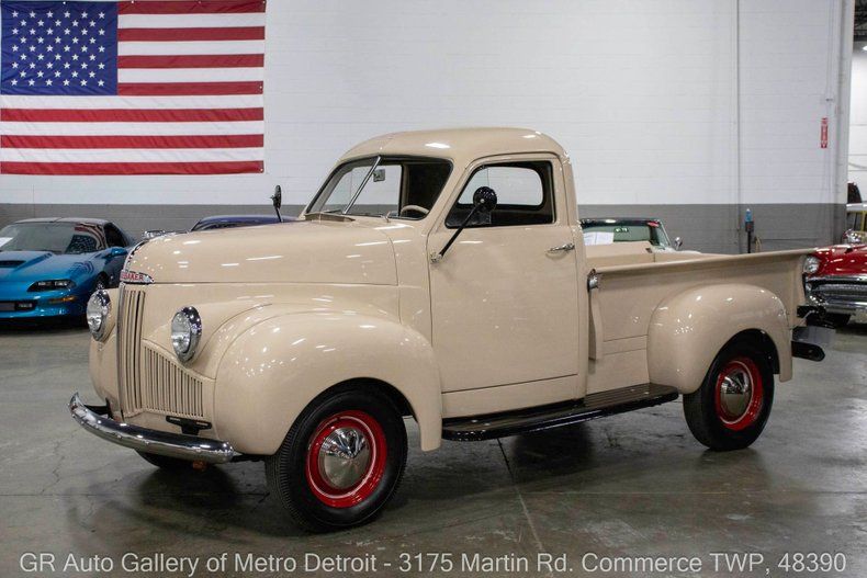 GR Auto Gallery is pleased to present this beautifully restored 1947 Studebaker Pickup for your consideration. Finished in a clean Beige exterior over a Brown interior, this classic truck underwent a full frame-off restoration within recent years and presents in excellent condition throughout. It is powered by a 169 cubic inch flathead inline-six engine paired with a 4-speed manual transmission, delivering a nostalgic driving experience rooted in postwar American design. This truck has been converted to a 12-volt electrical system for modern reliability and features crank windows, chrome front and rear bumpers, Firestone tires with chrome Studebaker hub caps, and a full-size spare mounted underneath the bed. Drive this one out of our showroom or have us assist with shipping it to you anywhere in the United States! Don't hesitate to call us with any questions or for more information.