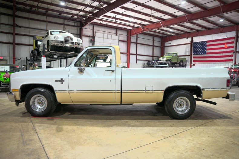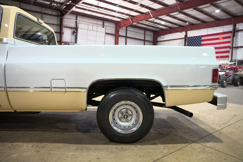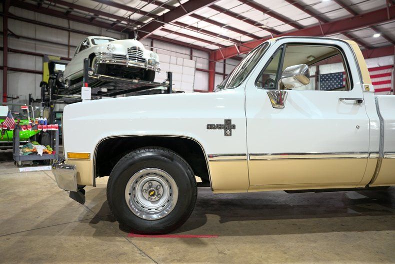 GR Auto Gallery is excited to present this clean 1986 Chevrolet C10 Silverado finished in a classic two-tone white and tan color combination. The body lines are straight, the chrome front bumper shines, and the hood ornament adds a touch of vintage flair. The truck sits on fresh tires and carries a timeless square-body stance that remains one of the most iconic looks in pickup history.
