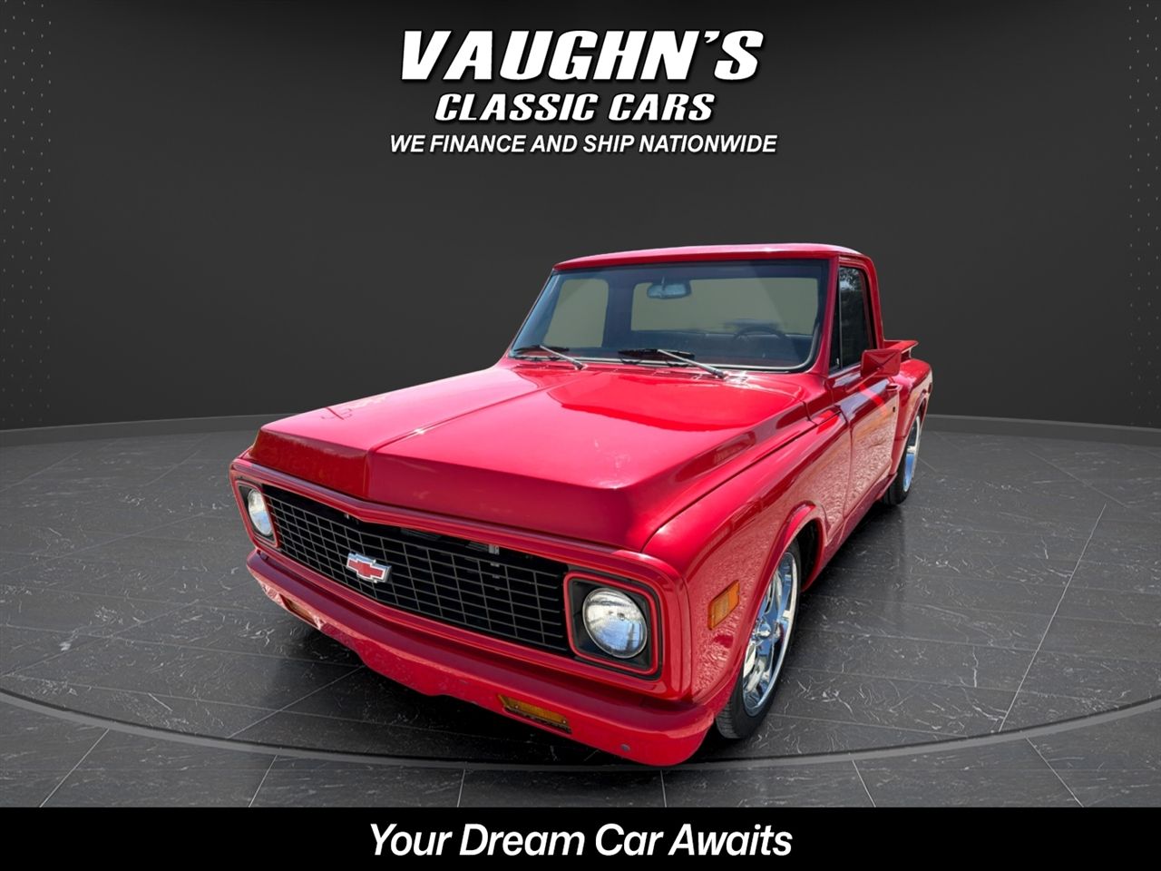 Check out this awesome custom 1971 C10 step side pickup with beautiful paint on a straight and solid body, many custom touches on the truck, comfortable reupholstered seat, new Vintage air, strong running Corvette 350 and 4 speed, power steering and power disk brakes, new custom wheels and tires, and sweet-sounding dual exhaust. This truck drives amazing and is very dependable. It turns all the heads too! Check with us for financing with only 10% down and we offer nationwide shipping! Visit Vaughns Classic Cars online at vaughnsclassiccars.com to see more pictures of this vehicle or call us at 618-336-5210 today to schedule your test drive.