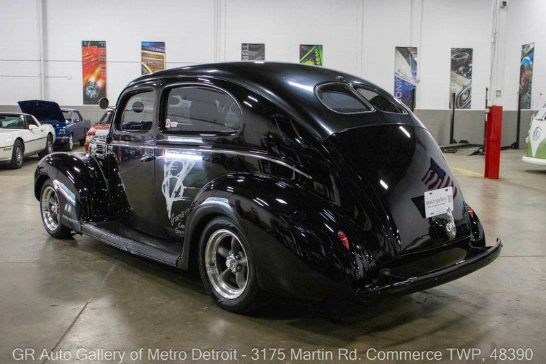 GR Auto Gallery is pleased to present this beautifully restored 1939 Ford Tudor for your consideration. Finished in a deep Black exterior over a striking custom Black and OEM Porsche Plaid interior, this Tudor is a true standout classic with tasteful modern upgrades. Under the hood, it's powered by a strong-running SBF 347 cubic inch Stroker V8, mated to a performance-built C4 automatic transmission with manual valve body. This Tudor received a complete frame-on restoration within the last year professionally built by hot rod legend Rick Dyer, with detailed restoration photos included. Highlights include all-new window felt and seals, all-new windows (except the front windshield), Frenched LED taillights, new exterior and interior mirrors, and a fully rebuilt front axle with fresh bushings. The braking system has been fully upgraded with new Wilwood disc brakes on all four corners, new brake lines, a proportioning valve, and a new brake fluid reservoir. Additional features include a custom 3-inch dual exhaust with fender exit headers, Volvo-powered front seats, fresh carpeting throughout, and an Alpine CDE-175BT CD/USB stereo system paired with Alpine speakers. Drive this one out of our showroom or have us assist with shipping it to you anywhere in the United States! Don't hesitate to call us with any questions or for more information.