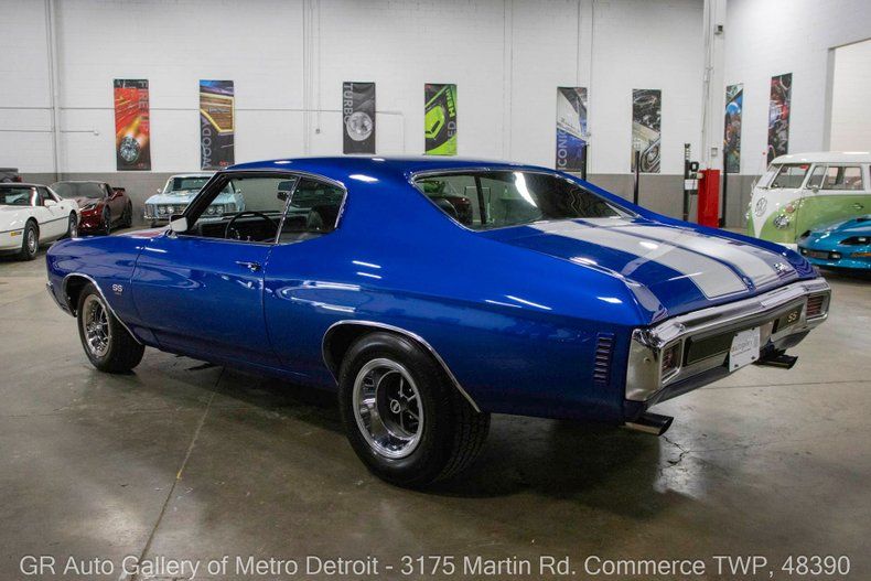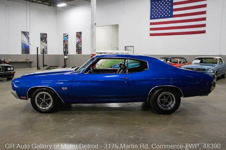 GR Auto Gallery is pleased to present this striking 1970 Chevrolet Chevelle Malibu for your consideration. Finished in a head-turning Electron Blue Metallic with painted Cortez Silver stripes over a clean Black interior, this Chevelle has been meticulously cared for and tastefully upgraded. Power comes from a freshly rebuilt 468 cubic inch V8 (rebuilt recently with roughly 5,000 miles since) paired with a freshly rebuilt 700R4 4-speed automatic transmission featuring a manual valve body at 67,000 miles and a 3.73 Traction Lock rear end. Performance upgrades include AFR aluminum heads, Hedman headers, an aluminum water pump and radiator, Wilwood four-wheel disc brakes, a torque converter with a 3,200 RPM stall, tubular suspension, and a Pypes exhaust system. Additional features include Vintage Air conditioning, power steering and brakes, a functional SS cowl induction hood with hood pins, B&M shifter, Bluetooth handsfree aftermarket Chevrolet stereo, Sunpro super tach, Melling oil pump, a custom removable suede trunk panel, and the original window sticker. Numerous receipts/dated documentation detailing the build and maintenance accompany the vehicle. Drive this one out of our showroom or have us assist with shipping it to you anywhere in the United States! Don't hesitate to call us with any questions or for more information.