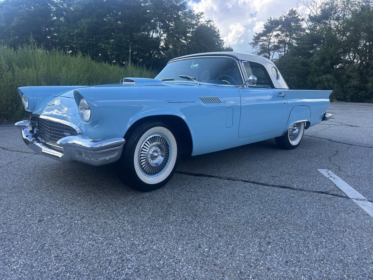 1957 Ford Thunderbird. Peacock blue exterior with 2-tone blue interior. 312 v8 with automatic transmission. Nice driving car! Call today!