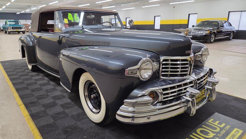 1946 Lincoln Continental Convertible with original V12 engine and manual column shifter.