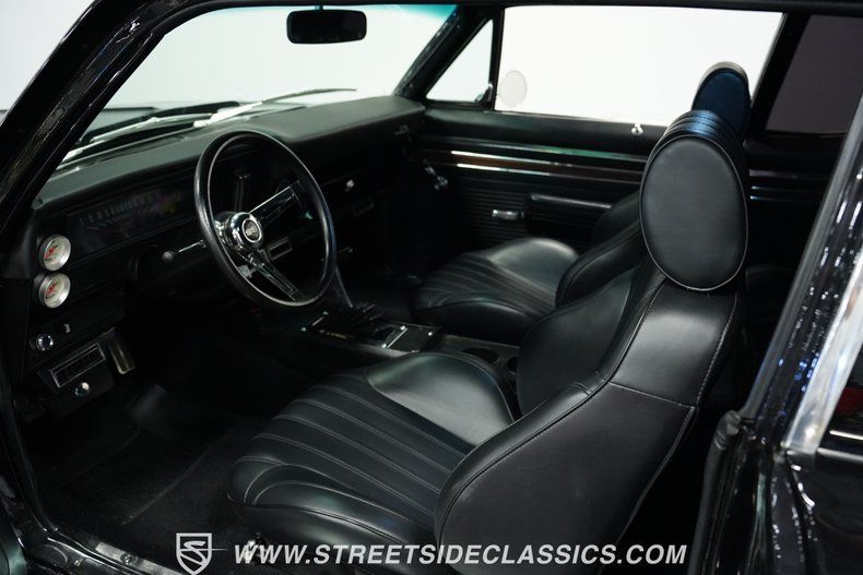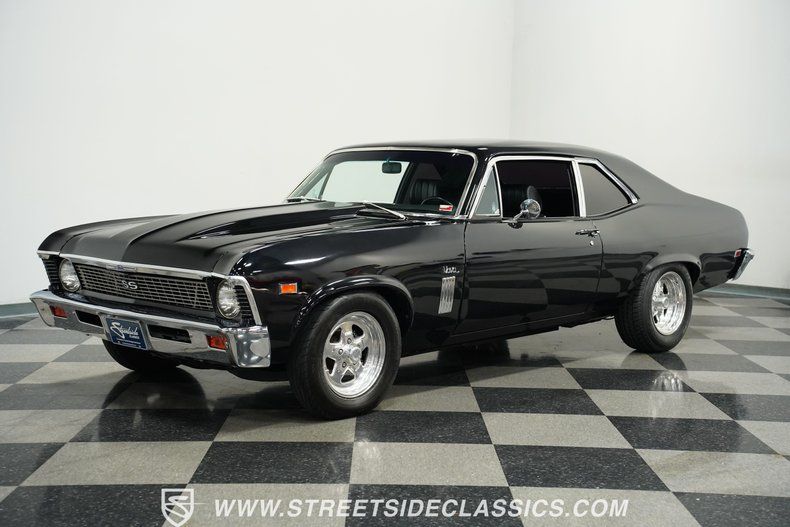 This Jet Black 1969 Chevrolet Nova SS Tribute is one amazing-looking prostreet cruiser. As chrome always does, it looks great on black and shines perfectly on this muscle car. The racing wheels and cowl induction hood make this ride look like it's ready for a little more than a cruise. The tinted windows add to that mysterious look of being up to no good, and although hardly noticeable, the exhaust tips stick out just enough to finish off the sophisticated look.