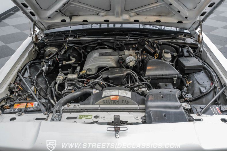 Under that expansive hood, we find a 302 cubic-inch V-8 engine that produced approximately 150 horsepower and 270 pound-feet of torque when new. An H-pipe dual exhaust, complete with aftermarket mufflers, reminds anyone within earshot that a 5.0-liter V-8 sounds good, regardless of how many people it needs to carry. Those ponies are routed through an AOD four-speed automatic transmission before being sent out to a live axle rear end, which transfers power to the pavement via fifteen-inch wire-spoke wheels shod in 215/70R-15 Cooper tires.