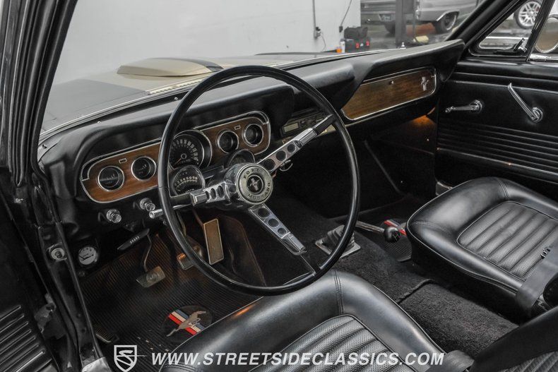 Beneath the scooped hood, you'll find a period-correct 289-cubic-inch V8, an engine that gained a well-deserved reputation for reliability, with many still on the road today. True to form, it starts right up and idles smoothly and is outfitted with an aluminum Edelbrock intake manifold, shorty headers, and a Holley 4-barrel carburetor to up its power. Its dual exhaust terminates in a pair of Flowmaster mufflers, so this fastback has a deep, but not overpowering, exhaust note. It also has strong road manners. It tracks nicely as it cruises on its set of 14" wheels outfitted with Cooper Cobra tires, and its 3-speed manual transmission shifts without issue.