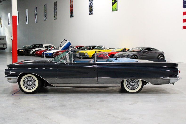 The GR Auto Gallery is pleased to present this 1960 Buick Electra for your consideration. This vehicle is being offered out of a collection following 15 years of ownership from an experienced collector where the vehicle was very well cared for. This Buick reportedly underwent a frame up restoration between 1991-1992 when the odometer was reset. The vehicle is finished in Midnight Blue Poly over a two-one blue interior. The exterior paint and brightwork present well with very few imperfections throughout. The interior of this vehicle shows minimal wear and also comes with the contrasting tonneau cover. Powering this convertible is the 401 Nailhead V8 which sends the power to the rear wheels through a 2-speed dynaflow transmission which lets this beauty float down the road with ease. The vehicle is currently showing 8,698 miles on the odometer approximately 4,500 of which were added under current ownership. This Buick has been well cared for and is ready to cruise with the next enthusiast.