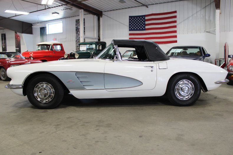 This Corvette has been owned by the seller since 1985 and believed to be original or at least mostly original including paint. That said, there are some imperfections as you would expect from paint of this era. It is so cool to see cars that have been left untouched. Loved and cared for but untouched. This is a desirable dual quad set up offering a fun 270 HP experience. The interior is in good driver condition with all gauges in good working condition. The top operates as it should, the engine compartment is in tidy unmolested condition with all stock parts still in tact. This car starts right up, idles perfectly and goes down the road very nicely with no funky noises, smells or clunks. The underside of the car is in good not rusty condition. This is one of those cars that you buy, enjoy and leave it the way it is in my opinion. This car comes with window sticker and original owners manual along with key for antennae. I really like the 61 as it is still a solid axle C1 but starting to transition to a C2 with the updated rear end. This Corvette has been properly owned, stored and cared for and is a three-owner car from new with the first owner being a Professor in Indiana, then to Grand Rapids and finally to our seller in 1985. These cars are becoming hard to find in this condition as most of them have had some sort of restoration along the way. Do not miss this opportunity. We welcome any questions and inspections here in our Traverse City location and look forward to talking to you.