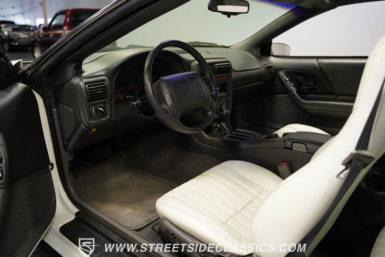 Inside, we find an eye-catching stock interior outfitted in a strikingly clean white leather upholstery. A power driver's seat, power locks, windows, and mirrors, along with air conditioning and cruise control, add all the modern amenities anyone could want in a late-1990s muscle car. The four-spoke power-assisted steering wheel sits ahead of a 7,000 rpm tachometer and 150 mph speedometer. An AM/FM/Cassette A/C Delco head unit features large analog buttons, making it simple to curate a soundtrack. The AC controls located at the base of the center stack adhere to the easy-to-use ethos and facilitate straightforward temperature adjustment.