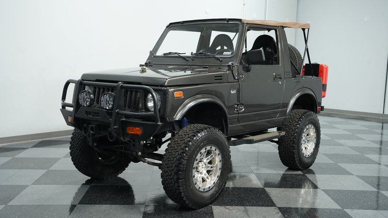 Now here's a vehicle that's sure to produce some double takes. This 1982 Suzuki Jimny is an offering that was tailored for the world market, so you're not likely to come across one very often. Dressed in Graphite Black paint and outfitted with sizable tires, this is a ride that's equipped for action. It has a pleasingly aggressive stance that comes via an added 6" Calmini lift kit and sports Rocky Road Outfitters bumpers both fore and aft, with a set of KC fog lamps perched just above to light the road ahead. A pair of RW Customs side steps, along with an added jerry can holder, are the perfect touches to complete its rough and ready appearance.