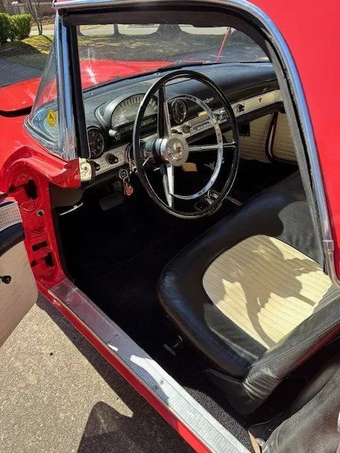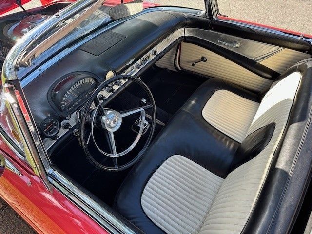 This 1956 Ford Thunderbird is a true American classic in remarkable preserved condition. Powered by its original 312 cubic inch V8 engine with approximately 40,000 original miles, it delivers smooth, confident performance. The 3-speed automatic transmission shifts effortlessly, making it an enjoyable cruiser for weekend drives or car shows. The car presents beautifully with its vibrant red exterior paired with a stylish black and white interior that remains in excellent condition. The body is straight and solid with no rust issues, and the chrome and trim shine brightly. Mechanically, it runs and drives just as a Thunderbird should-strong, smooth, and quiet. This is a wonderful example of a well-cared-for, mostly original Thunderbird that maintains its classic elegance and timeless appeal.
