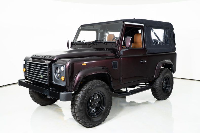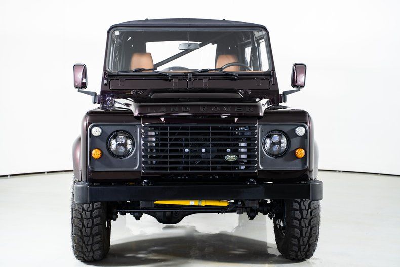 The custom red metallic exterior and black soft top give this Defender 90 a bold and unmistakable presence. Inside, the custom brown leather bucket seat interior adds a touch of luxury to its rugged design. Custom gauges keep vital information at a glance, while air conditioning ensures comfort in any climate.