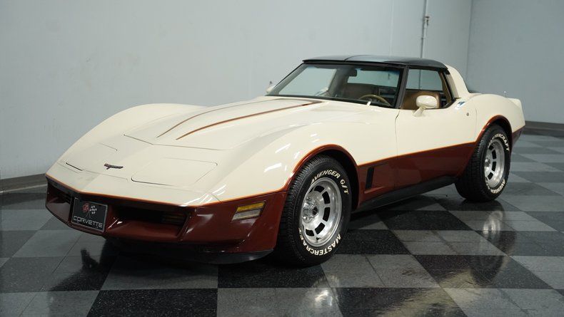 This highly original 1981 Chevrolet Corvette boasts a rare two-tone Cream Beige and Dark Bronze paint scheme that gleams in the sunlight, a testament to decades of meticulous care. The C3's iconic silhouette remains as striking today as it was in '81, with Transparent T-tops ready for open-air adventures. Rolling on factory 15-inch wheels wrapped in beefy 255/60R15 rubber, this Corvette combines classic style with road-gripping performance. Dark Bronze accents complement the sleek bodywork, creating a quintessential American sports car aesthetic.