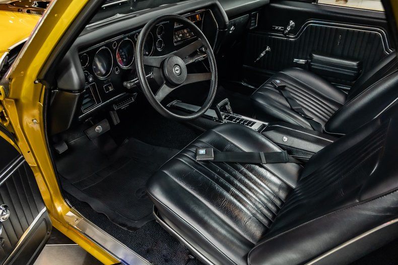 The interior of this Chevrolet is just as beautiful as the outside! This interior has been restored to factory appearance. This El Camino features black interior with a center console, Staple Shifter, Factory Style Radio, Front Bucket Seats with Lap Belts, Factory Style Gauges, Factory Style Steering Wheel & Manual Windows!