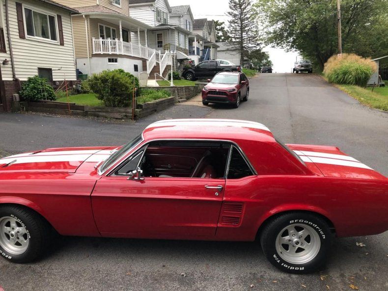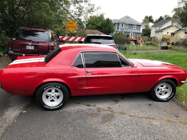 This 1967 Ford Mustang is a beautiful example of the legendary American pony car. Showing just 75,000 miles, it has been refreshed with a brand new red paint job accented by bold white racing stripes, along with a completely redone interior. Under the hood sits the desirable 289 cubic-inch High-Performance V8 paired with a smooth 3-speed automatic transmission. Recent upgrades include new exhaust, stereo system, A/C, and gas tank, making it both show-ready and enjoyable to drive. An ideal choice for collectors and enthusiasts alike, this Mustang offers a timeless combination of style and performance.