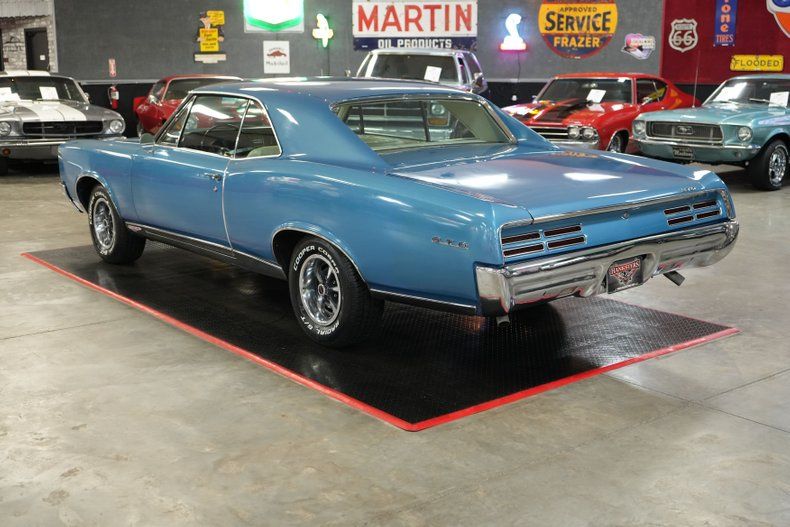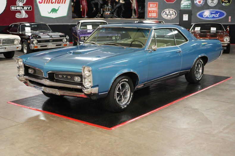 This 1967 Pontiac GTO delivers timeless muscle car appeal with a strong factory-style setup. Under the hood sits a Pontiac 400 V8 paired with a GM TH400 automatic transmission and a 10-bolt POSI rear end with 3.55 gears. It's equipped with power steering and power brakes, along with 4-wheel drum brakes for classic stopping power. The blue exterior is complemented by a white vinyl interior and 14" OEM Rally II wheels wrapped in 225/70/R14 Cooper Cobra Radial G/T tires. Additional features include a Holley 650 CFM 4-barrel carb, OEM intake, and ignition system. A true vintage cruiser with iconic Pontiac style. Free shipping & warranty available!!