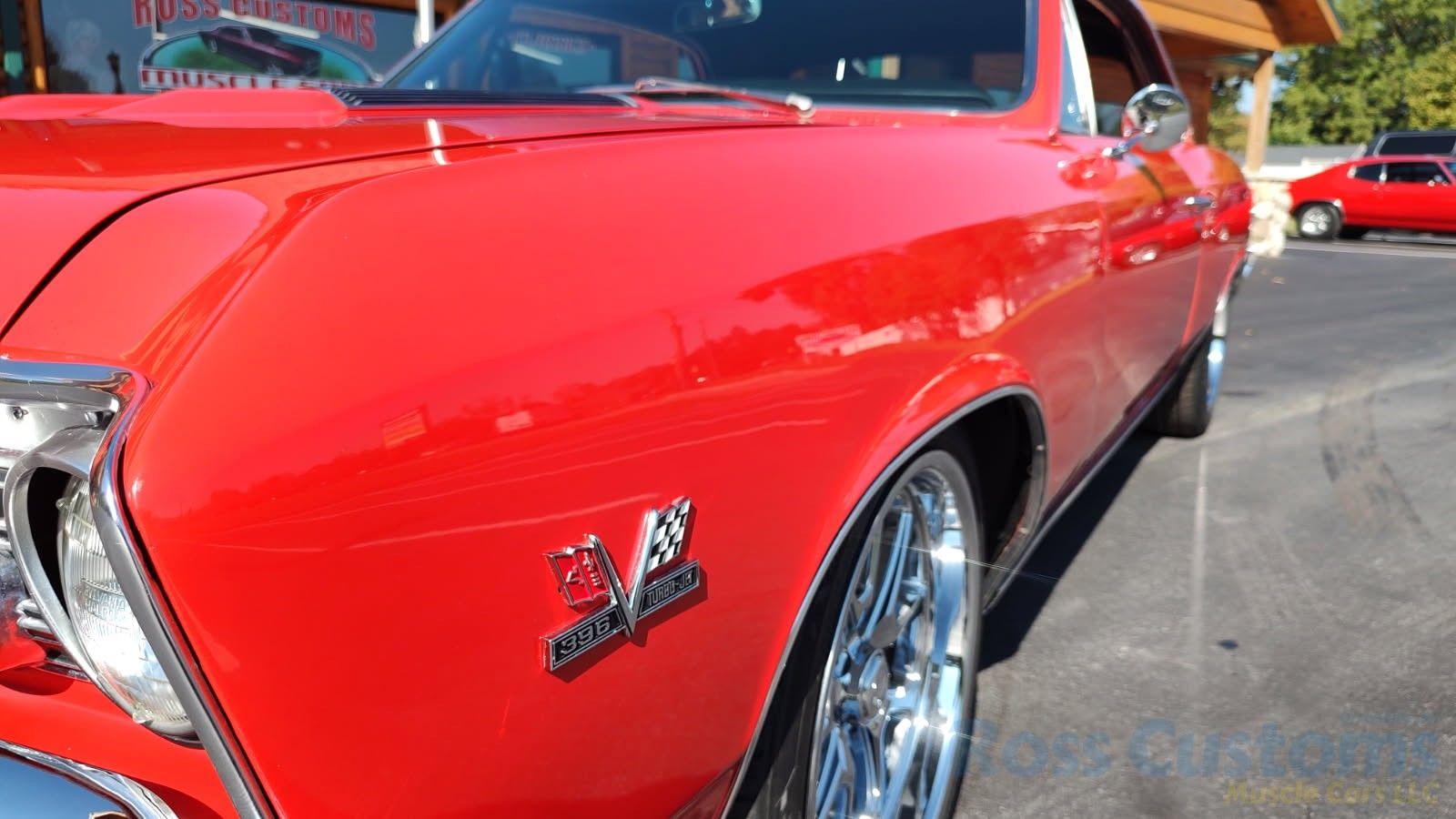 This is a very nice clean all original panel 67 Chevelle SS 396, done in very nice Torch Red, basecoat clearcoat, sanded and wheeled smooth, at time of restoration had new tinted windshield; all other glass is factory original in very good condition, all original window stainless moldings are in excellent condition, new weather stripping and window felts, new correct bowtie side view mirror, original door handles in very good condition, original SS hood louvers in very good condition, hood molding and fender eyebrow moldings are new, original grill and headlight bezels in excellent condition, re-chromed front bumper, new emblems all around, new wheel well and rocker moldings, at time of restoration had new taillight bezels and tail panel moldings, new rear bumper.