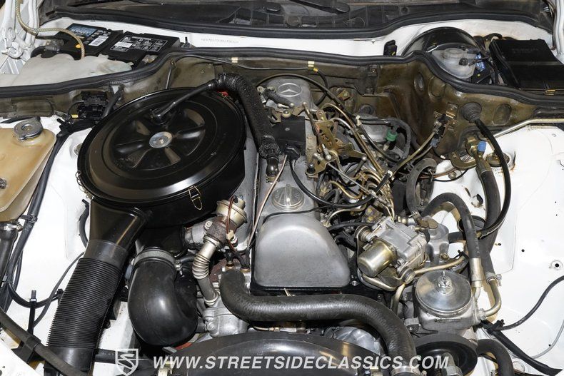Under the hood, this 1984 300SD houses a 3.0 I5 turbo diesel engine paired with a 4-speed automatic Mercedes-Benz 4G-Tronic transmission. The fuel injection system and turbocharged powertrain provide a solid, quiet driving experience with smooth idling and consistent shifting. While the engine is not focused on high horsepower, it delivers adequate performance for relaxed cruising. The car features power disc brakes at all four corners, power steering, and a suspension setup that retains the classic independent front and rear design, ensuring a comfortable and controlled ride.