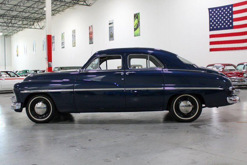 GR Auto Gallery is pleased to present this highly original and unmolested example of the 1950 Mercury Sports Sedan for your consideration. Believed to be all numbers matching, this vehicle shows much like a museum piece as it harbors its flathead V8, features a beautiful factory color both inside and out, and is so drivable it would seem it had been manufactured just yesterday! From top to bottom, inside and out, this vehicle stands tall with all the right parts and pieces to give this vehicle so much nostalgia it's palpable. From the outside, the Banning Blue exterior looks sharp with all its chrome and emblems in great condition and its original wheels with wide white wall tires add to the styling. The cloth interior two-tone material although re-upholstered, sits era-correct and in great condition and really sets this one apart from the rest.