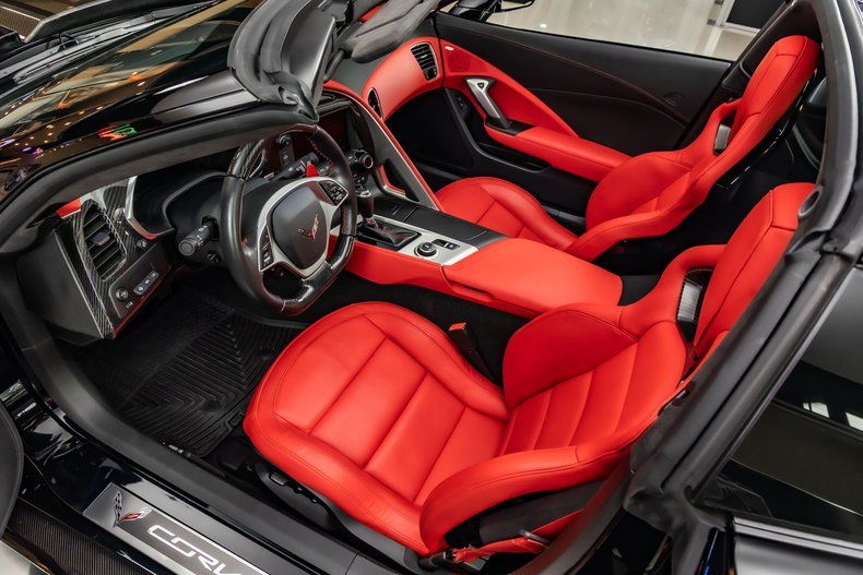 The Inside of this Corvette is fully decked out! This Corvette features a Adrenaline Red Napa Leather interior with the 3ZR Premium Equipment Package! The 3ZR Package features The Memory Interior Package, Sueded Microfiber Wrapped Upper Trim Package, Custom Instrument Panel and Doors, Heated & Ventilated seats, Performance Data And Video Recorder W/ Navigation and Curb Front View Cameras! This Corvette also features a Carbon Fiber Wrapped Steering Wheel, Red Seat Belts and a Carbon Fiber Instrument Panel!