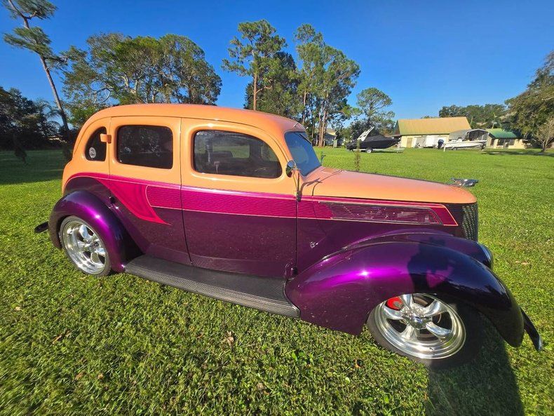 This 1937 Ford Humpback Sedan is a stunning, high-end custom build in excellent show condition. Featuring a 100% steel body, it showcases quality craftsmanship throughout. The exterior is finished in a striking custom two-tone color combination that enhances its classic curves. It is powered by a 5.7L LT1 Corvette engine paired with a smooth 4-speed automatic transmission, providing both reliability and performance. Modern comforts include power accessories, air conditioning, and a 9-inch touchscreen stereo with a backup camera. The interior is beautifully finished to match the exterior's custom look, making this Humpback a perfect blend of vintage design and contemporary comfort. It runs and drives beautifully and has been extremely well cared for.