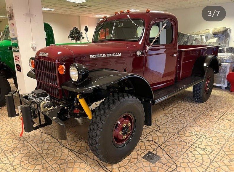 This 1942 Dodge Power Wagon Type D has undergone a complete, top-quality nut and bolt frame-off restoration and presents in stunning show-ready condition. Finished in a deep burgundy exterior with black accents, it has been meticulously restored to preserve its original charm and functionality. Power comes from the original 230 cubic inch Flathead Inline-6 engine paired with a 4-speed NP420 manual transmission and 4x4 drivetrain, all operating flawlessly. The interior is beautifully restored in black with burgundy trim and is as clean as the day it left the factory. The truck runs and drives perfectly, showing only 34,698 miles, and is equipped with full body protection, nano ceramic tint, and a front-mounted winch. It has been stored in a climate-controlled garage and started regularly to maintain mechanical integrity. This Power Wagon is a true collector's piece and an exceptional example of wartime engineering and restoration craftsmanship.