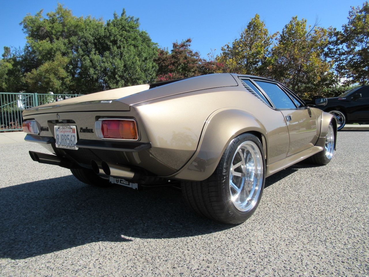 The DeTomaso Pantera, one of those cars that not everybody is aware of and often ask what is that? It is a mid engine Italian designed Sports car with a Ford powerplant! This car was built by Steve Wilkinson of Pantera’s by Wilkinson for himself but never quite got to completing it until the previous owner approached him to purchase and finish it. Starting with a nice and solid body and chassis, Group 5 flares were added to be able to fit those monstrous 17 inch deep dish custom Pantera wheels with new 335/35 and 275/40 Michelin Pilot Sport tires for making it stick in the corners. The exterior is finished in Nara Bronze Metallic with front and rear Carbon Fiber bumperettes along with Carbon Fiber mirrors and blacked out trim. The engine is a 351 Cleveland bored and stroked to a 408 with Roller Rockers, Edelbrock aluminum intake, Holley dual feed 4 barrel carburetor, Black coated DeTomaso valve covers, high flow water pump, stainless steel headers with dual Performance mufflers and 4 stainless tips, high torque starter, High Performance Fluidyne 5 row aluminum radiator with electric fans, A/C, upgraded 4 wheel power disc brakes and the best upgrade ever, electric power steering! The fresh rebuilt ZF transaxle shifts effortlessly with a McLeod Heavy Duty Hydraulic Clutch with pressure plate and the upgraded adjustable Coilover suspension makes the car handle and sit at the perfect stance. The interior is finished with a Caron Fiber dash, matching door panels and center console along with some Black Procar headrest seats. The gated floor shifter and factory gauges look amazing along with the cockpit style seating makes you feel like your in a true race inspired car.