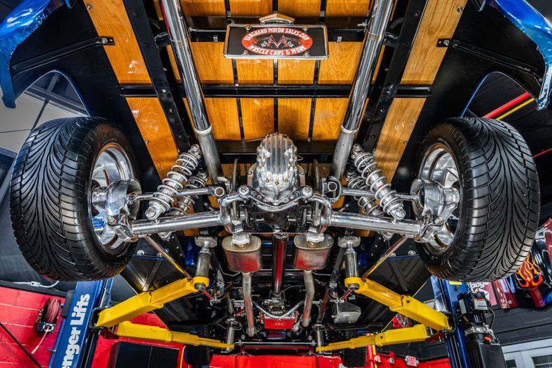 Inside, the interior of this 1956 F100 is Completely Restored and Upgraded! Take a look inside to see the Black Leather Bench Seat, Blue Carpeting, Custom Door Panels, Body Color Matched Dashboard, White Headliner, Custom Steering Wheel, Tilt Steering Column and Factory Style Gauges! Underneath Features many Tasteful Upgrades Including, Mustang 2 Style Front Suspension, Independent Rear Suspension and Dual Exhaust with Jet Coated Headers!