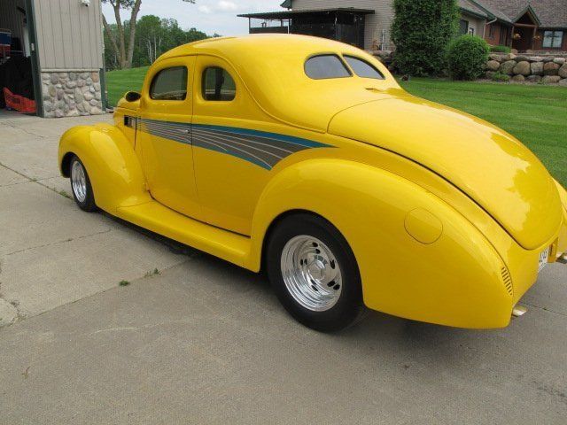 This 1939 Ford Standard Coupe is a professionally built all-steel hot rod that combines high performance with show-quality craftsmanship. Powered by a Corvette 350 ZZ3 engine producing 350 horsepower and paired with a 350 Turbo Stage II Pro Street automatic transmission, this car runs strong and shifts flawlessly. Every detail reflects custom artistry-from the chopped roof and louvered metalwork to the milled aluminum dash and custom lighting. The 1973 Corvette Yellow paint with blue and silver graphics gives it a standout appearance, while the Vintage Air system and high-end stereo ensure modern comfort and enjoyment. Mechanically, it's tight, reliable, and capable of highway cruising at 22 MPG. A truly remarkable and well-built street rod that's as functional as it is beautiful.