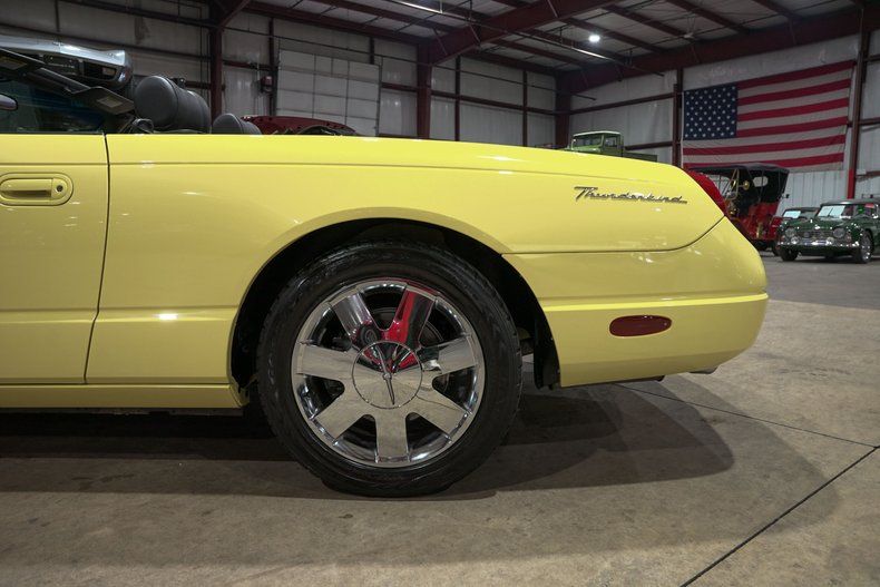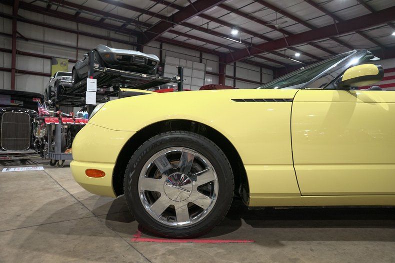 GR Auto Gallery is excited to present this 2002 Ford Thunderbird Deluxe, a stunning example of Ford's early-2000s revival of one of its most iconic nameplates. Finished in Inspiration Yellow, this Thunderbird immediately catches the eye, a color available only for the 2002 model year and produced on just 3,791 cars. The look is completed by a paint-matched hardtop, polished brightwork, and a classic long-hood, short-deck silhouette that pays tribute to the original 1955 Thunderbird.