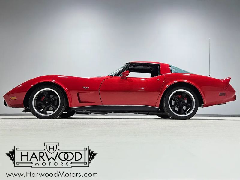 Given the long list of upgrades on this 1978 Chevrolet Corvette, you could be forgiven for thinking it should cost much more than it does. The engine alone was probably a significant portion of the asking price, making this a screaming bargain from any angle. The brilliant Torch Red paint is highlighted by red and blue stripes down the center, giving the car a race-ready look thats more than just posing-this one has the horsepower to back it up. Finish quality is good all around, not perfect, but more than acceptable for the local cruise nights. With a ducktail spoiler, it looks leaner and meaner than your average 1978 Corvette and it has an ideal stance that looks predatory. The stripes are nicely applied, wrapping around the front bumperettes and stretching over the T-top roof panels and onto the rear deck, and the way they extend into the roof gutters suggest someone took their time with the job. It has a great look that presents really well.