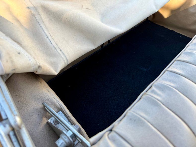 The vinyl upholstery is in excellent condition and the soft top shows well. All of the great Jaeger gauges are in nice shape and appear to function as they should. The dash looks nice, as do the door panels. It is rare to see one with the side curtain windows which is a nice touch if you ever get caught in a rain squall.