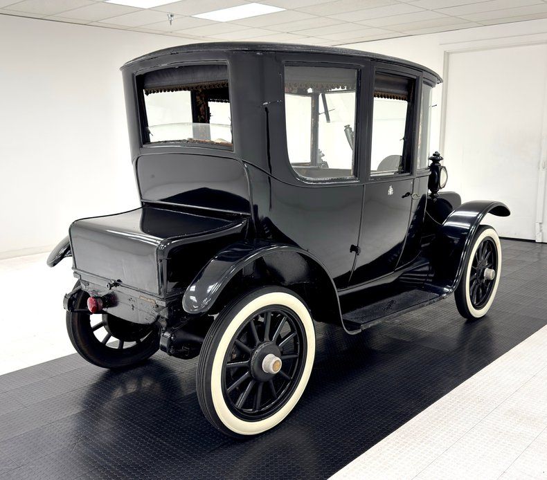 Like just about everything else from this era, the upright car presents in solid black, including the 32-inch wooden spoke wheels carrying white wall tires that offer some contrast. Cowl lamps also wear a coat of black, fronting a cabin that is supplied with tall windows and a high roof, requiring a step onto the running boards for entry. Without water to cool, there is no front grille and the front resembles the turtle trunk of a Model T, matched in style by the actual rear trunk lid of this car which houses a series of batteries. A pair of headlights perch low in front and a stylish lip encircles the arching fenders, while a textured vinyl roof presents in very nice condition. There's some uneven paint on the cowl but overall, the body and paint are in great shape.