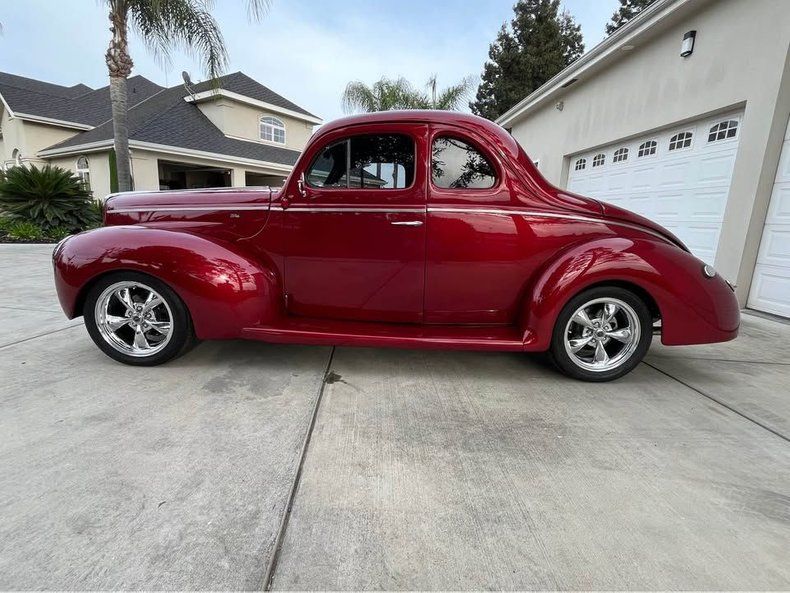 This 1940 Ford Deluxe is a stunning all-steel street rod that has been professionally built and meticulously maintained. Powered by a strong 383 Stroker V8 paired with a smooth-shifting 700R4 automatic transmission, it delivers both classic style and modern drivability. The Holley Sniper EFI system ensures reliable starts and performance, while the Ford 9-inch rear and Mustang II suspension provide confident handling. Inside, the fully customized interior offers modern touches like digital instrumentation and power accessories. The deep Burgundy paint gleams beautifully under any light, highlighting its sleek, classic lines. This Ford Deluxe is ready to show, cruise, and impress anywhere it goes.