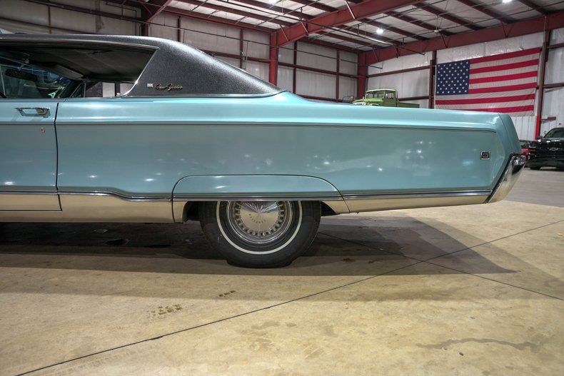 GR Auto Gallery is excited to present this 1968 Chrysler New Yorker finished in elegant Pale Blue Poly with a black vinyl top. This beautifully preserved full-size cruiser exudes late-'60s luxury with its long, sweeping lines, gleaming chrome bumpers, and pristine stainless trim. The original paint still shines with remarkable depth, a testament to the car's careful ownership and rust-free life in Georgia. Completing the classic look are a set of new tires that perfectly complement its stately presence on the road.