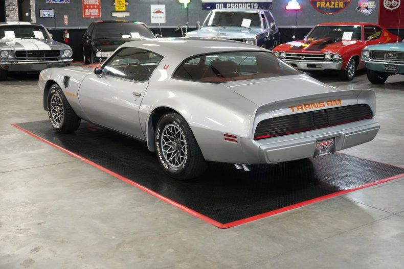 This 1979 Pontiac Trans Am delivers classic muscle car performance with its GM 403 V8 paired to a TH350 automatic transmission and 10-bolt POSI rear end with 2.80 gearing. The car features air conditioning, power steering, power brakes, front disc brakes, and Hotchkis sport suspension with upgraded OE Spectrum shocks and front & rear sway bars for improved handling. The Edelbrock Performer intake and Holley 600 CFM carburetor enhance performance, while a Kenwood stereo system adds modern audio to the red cloth interior. Finished in silver paint and riding on 15" Snowflake wheels, this Trans Am blends vintage style with reliable upgrades.